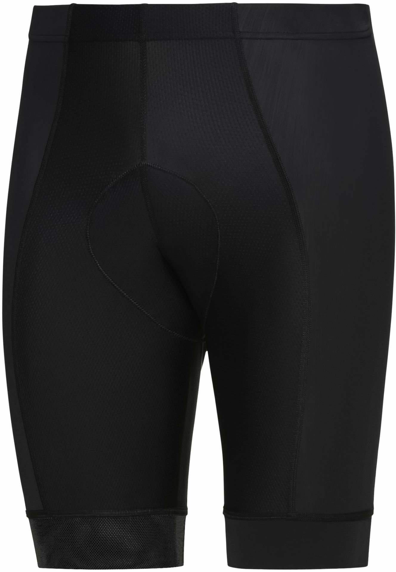 Ergonomically cut and dimensionally stable shorts with non-slip reflective leg ends.